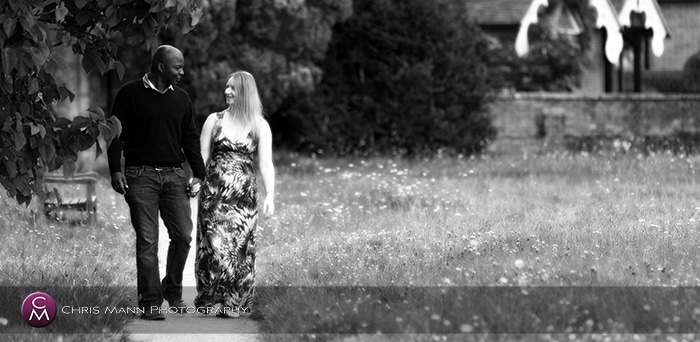 Last Wednesday Liz and Jonathan came over to chat about their wedding day plans (they’re getting married at Hartsfield Manor in October) and we took the opportunity to do a quick “engagement” shoot just around the corner on Church Green here in Wonersh. I was hoping for a bit of sunshine, as there’s been some around from time to time this past week, but no such luck – in fact we had to dodge the drizzle at the beginning of our session!