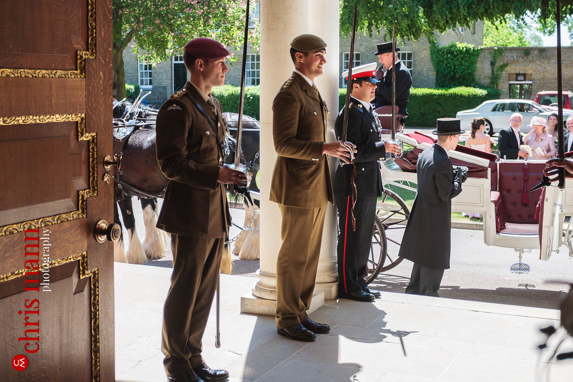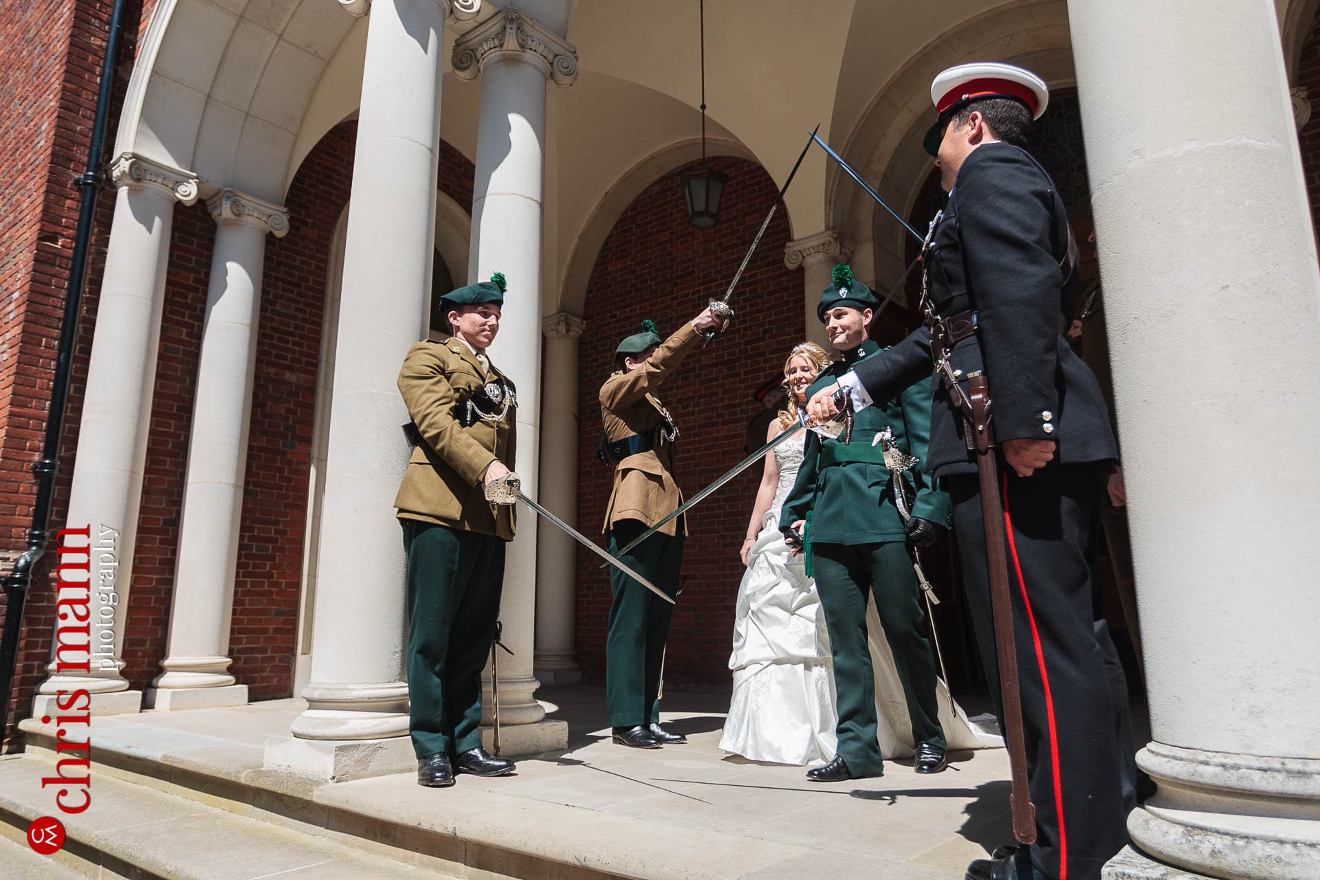 We combined forces (no pun intended) at the Royal Memorial Chapel of the Royal Military Academy, Sandhurst, for the wedding ceremony. The Chapel is a magnificent building with a complicated history, which you can read about here if you’re interested.