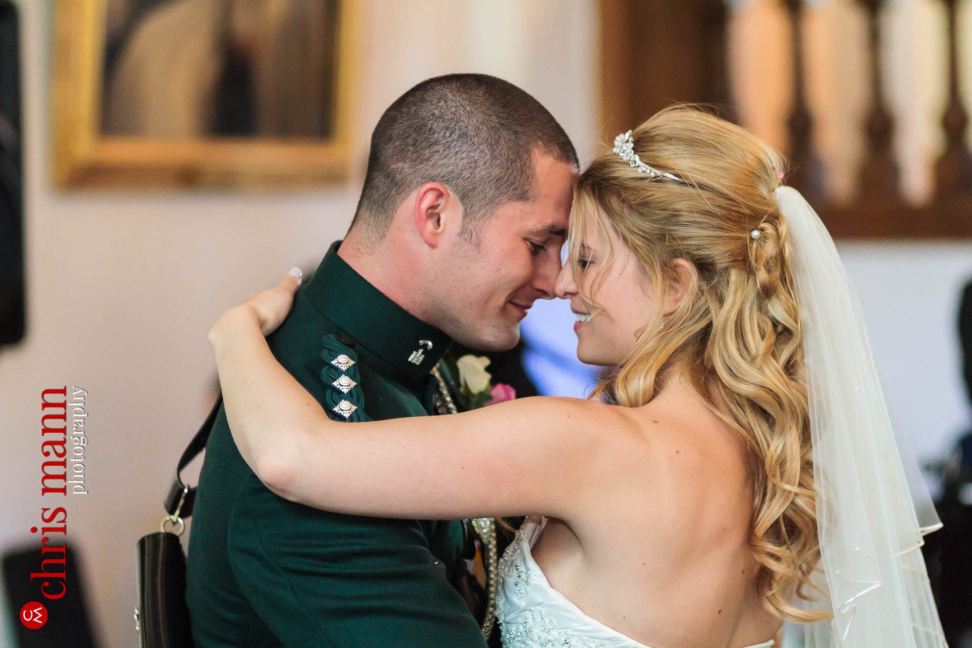 I started the day with Ben and the guys at Ben’s parents’ home, while my colleague Bruce was with the girls. Ben was resplendent in his uniform of Captain in the Royal Irish Regiment, and his Guard of Honour (including a paratrooper and a Royal Marine) brushed up pretty well too!